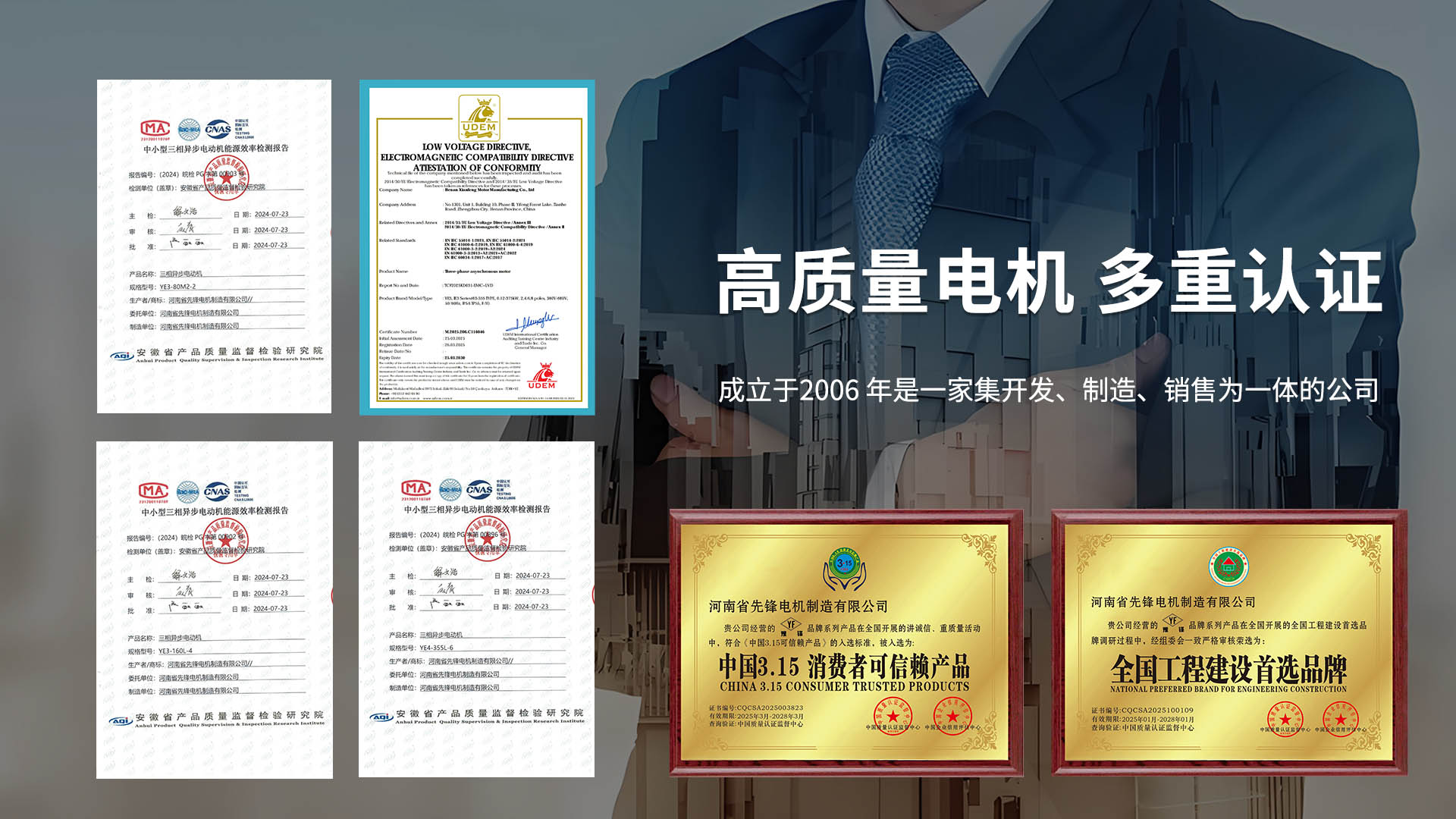 河南省先锋电机制造有限公司成立于2006年是一家集开发、制造、销售为一体的公司,公司拥有一批资深业内专家和求真务实的青年科技工作者 ,运用先进的电机 CAD 技术 ,使得电机设计更加迅速、准确。公司拥有先进的数控加工设备、可靠的工艺装备、先进的检验仪器、规范的质量保证体系确保产品质量稳定。